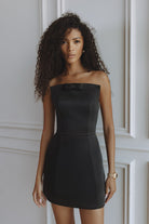 The Audrey Hourglass Mini Dress in black is the ultimate statement of modern elegance. Designed in a structured silhouette that flatters the figure, this strapless mini dress features clean tailoring with contoured seams that highlight the waist. A subtle bow detail at the neckline adds a touch of femininity, while the hourglass fit ensures a sleek and sculpted look.