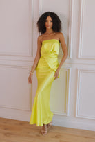 The Marcy Satin Maxi Skirt embodies effortless sophistication in a bold lime hue. Designed from a fluid satin that skims the body, this piece features a flattering high-waisted fit with a drawstring waist for adjustable comfort. The silhouette flows into a graceful maxi length, offering a soft, feminine movement with every step.