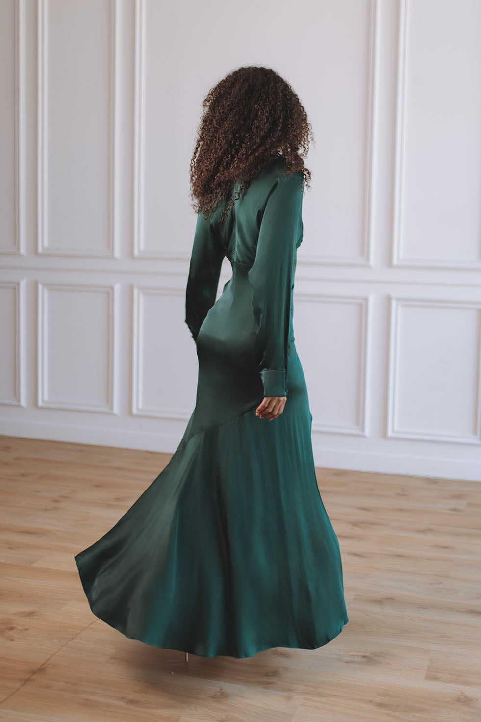 KARTIA LONG SLEEVE MAXI DRESS - EMERALD GREEN