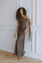 VIOLA ONE SHOULDER MAXI DRESS - BITTER CHOCOLATE