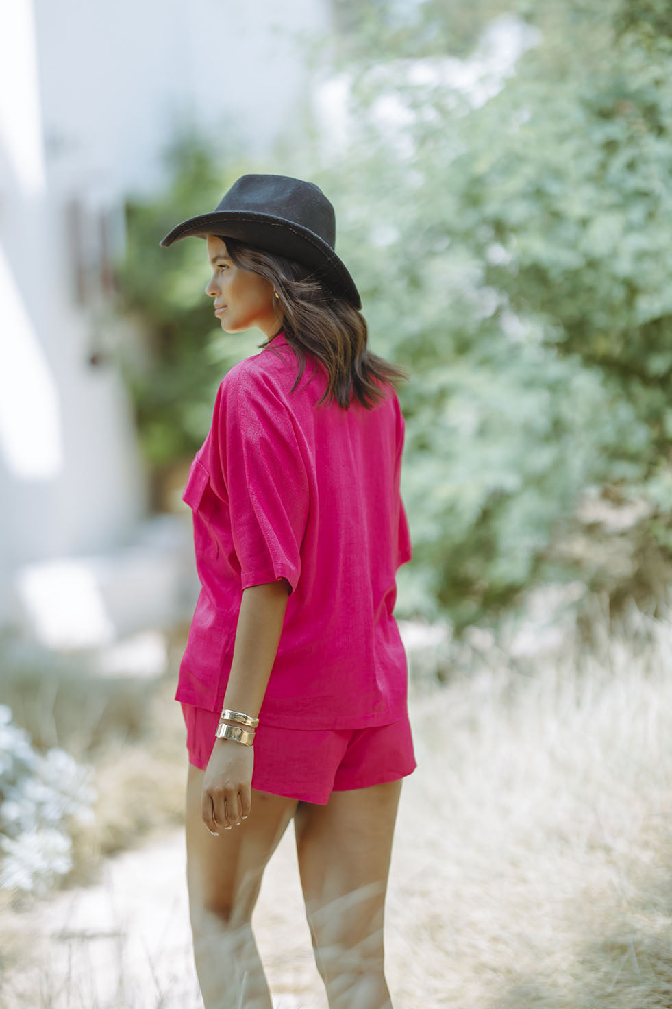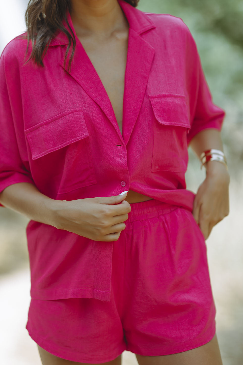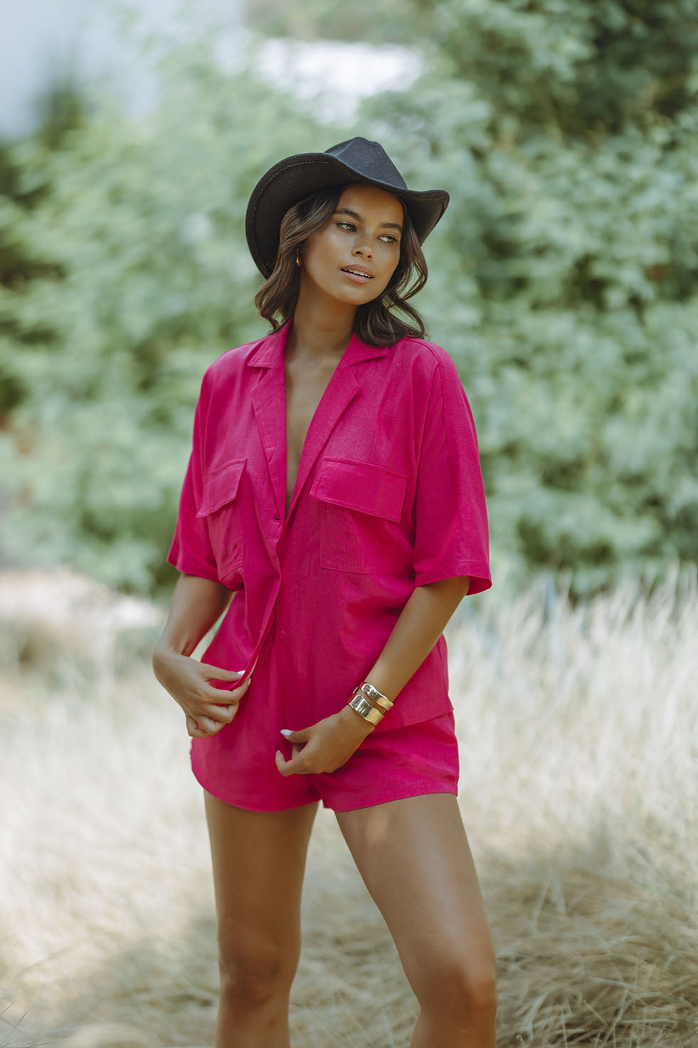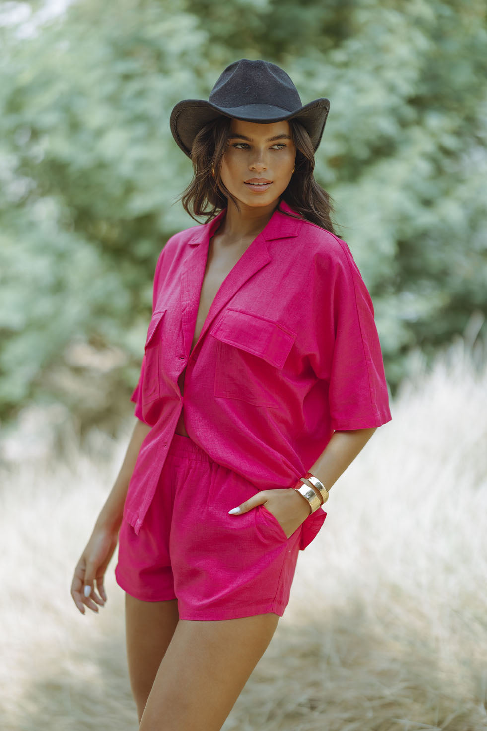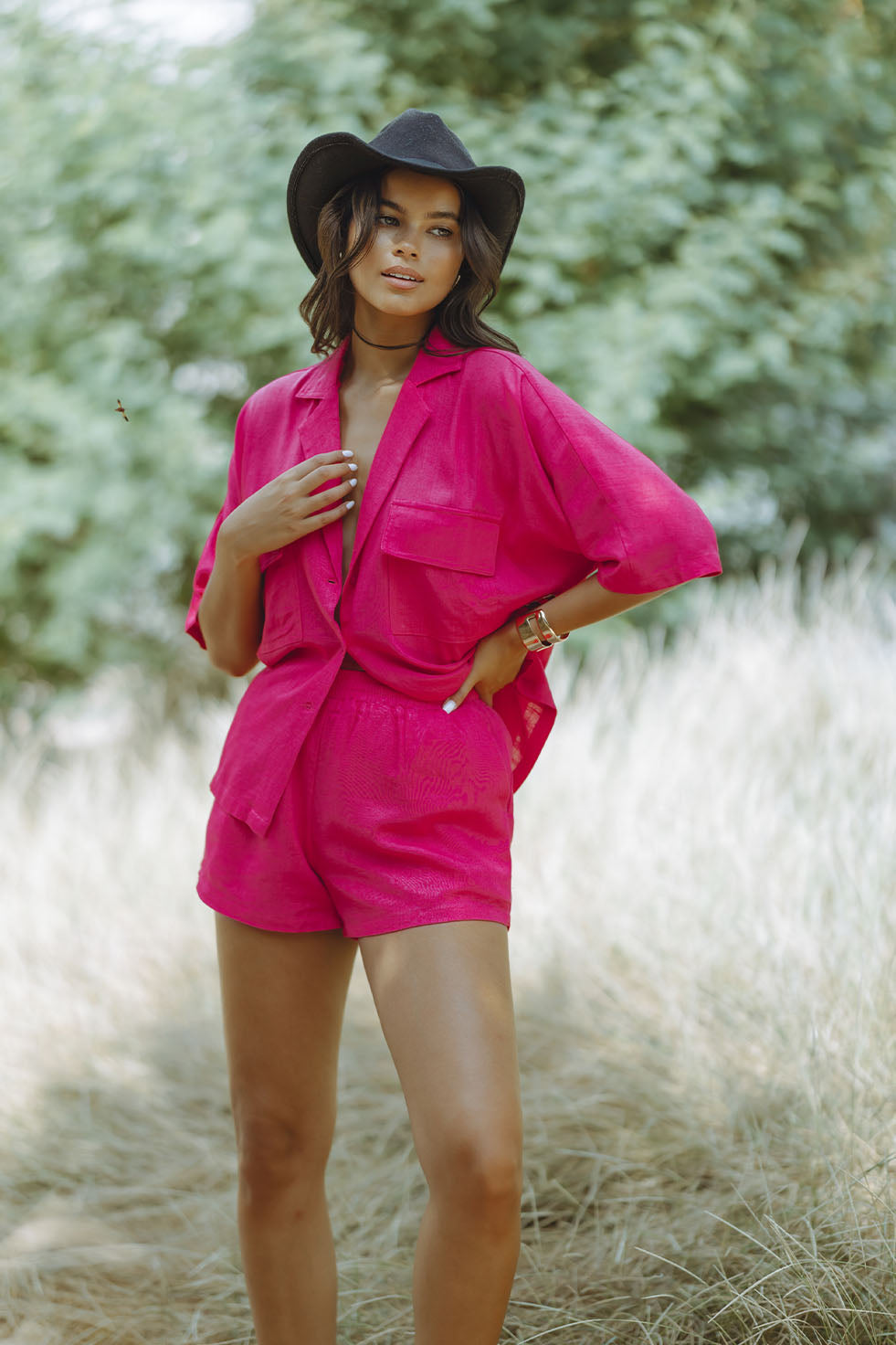 ZIA HALTER FAUX WRAP MINI DRESS - CELINA PINK