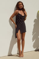 ALORA SCOOP NECK MINI DRESS - BLACK/WHITE POLKA