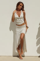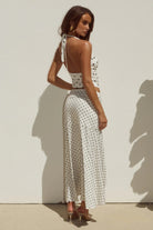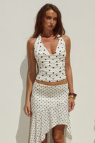 MELODY HALTER COWL TOP - CREAM/BLACK POLKA