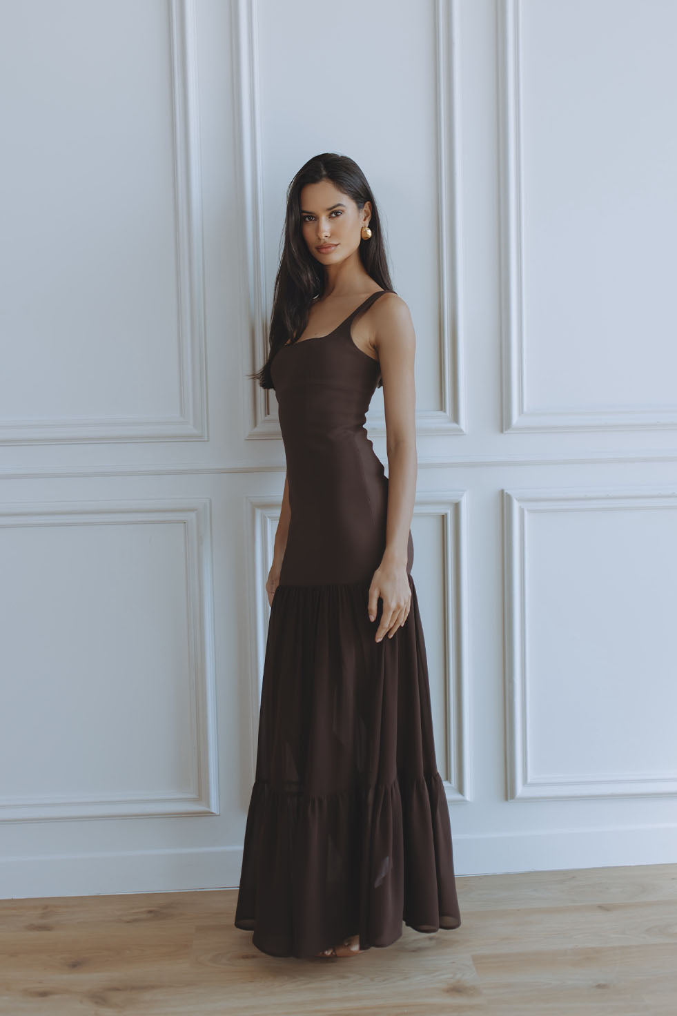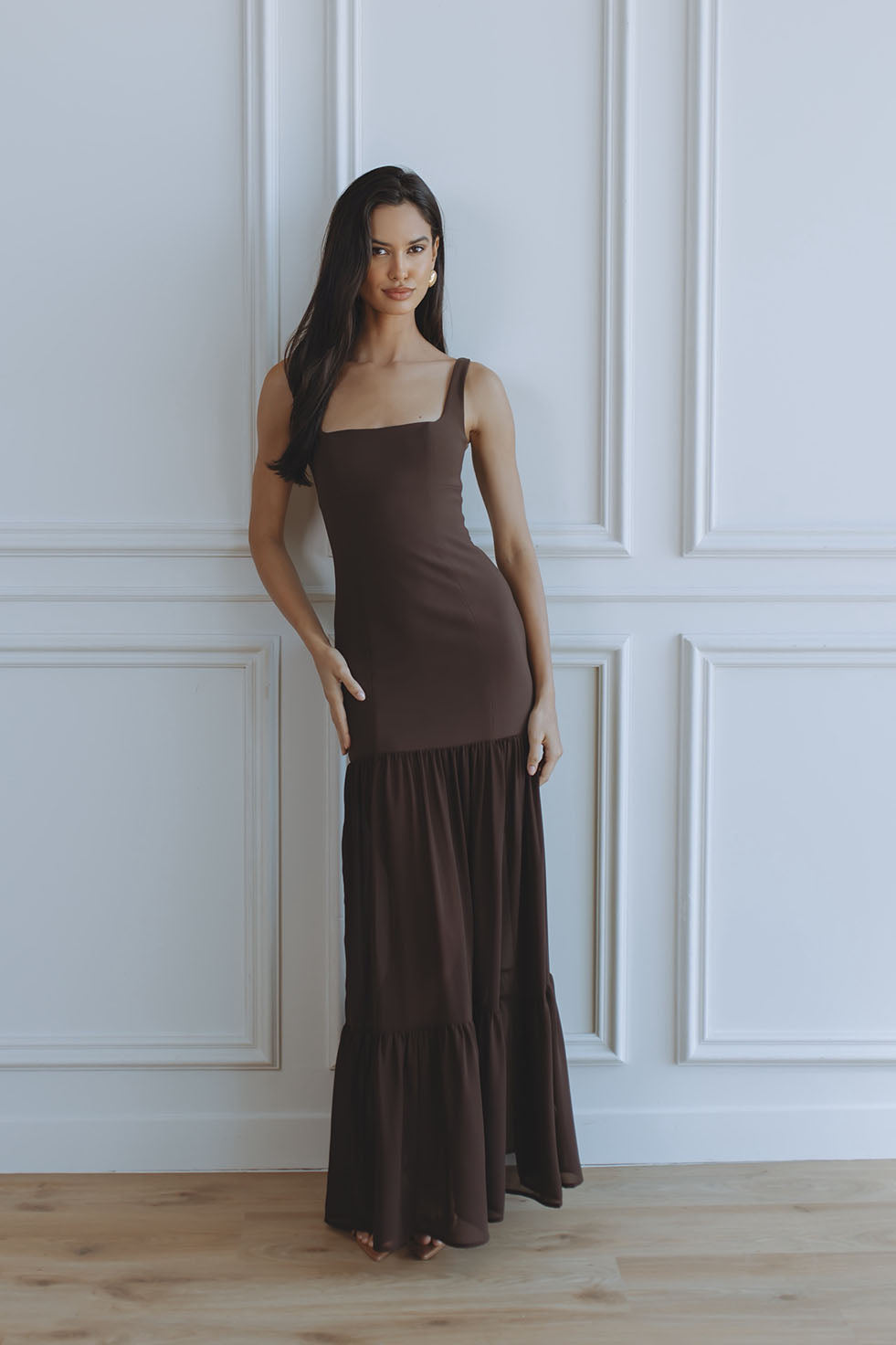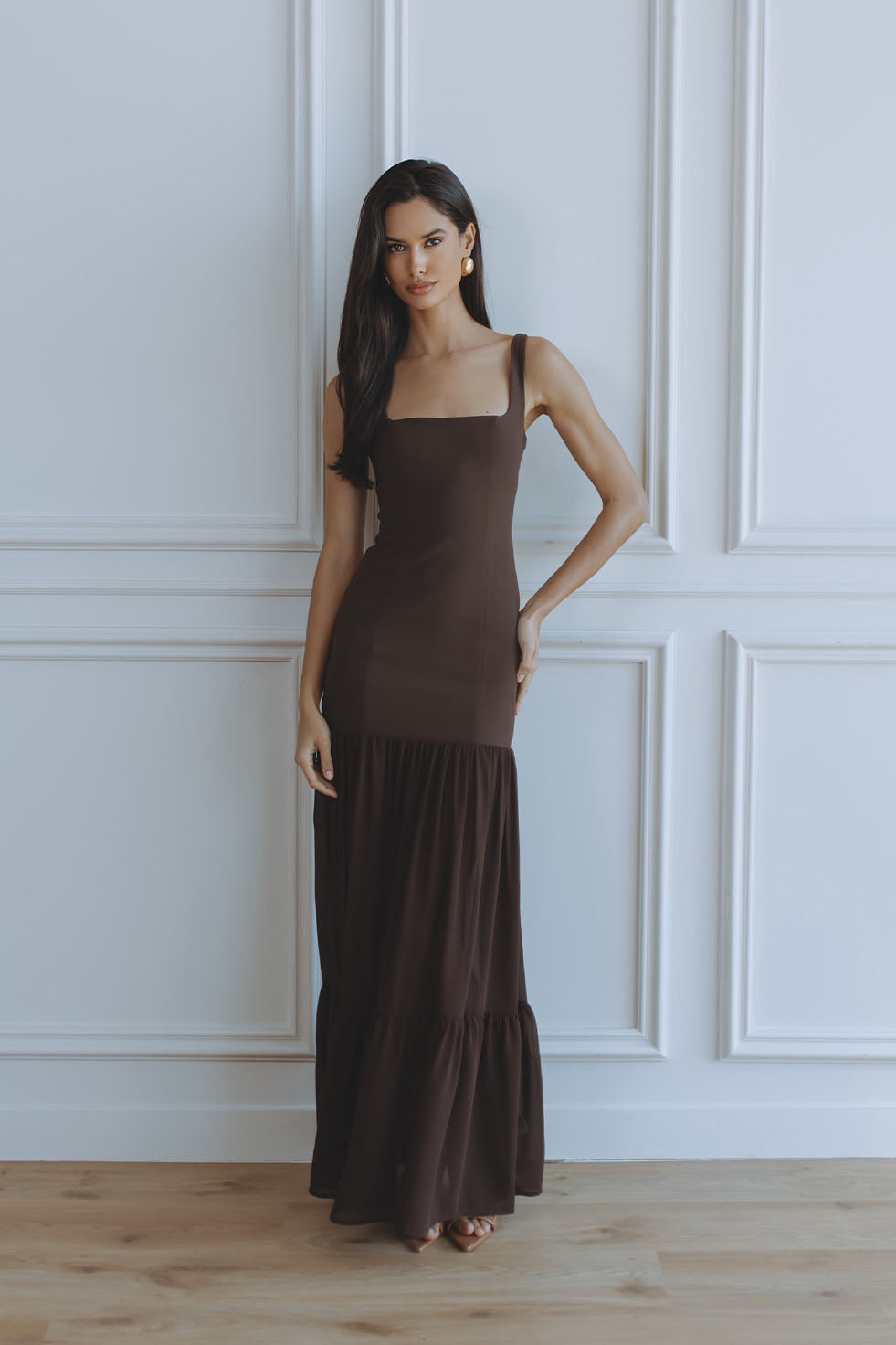 TAHLIA SQUARE NECK MAXI DRESS - BITTER CHOCOLATE