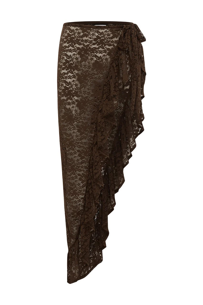 BRIANA WRAP WAVY HEM MAXI SKIRT - CHOCOLATE