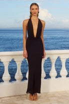 LEXIE LOW PLUNGE HALTER MAXI DRESS - BLACK