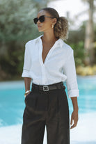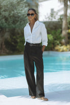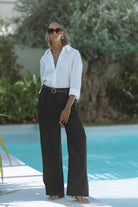 Chic, versatile, and effortlessly elevated—the Henley Linen Belted Trousers in black are made for polished days and stylish strolls. Crafted from breathable linen with a tailored high waist, soft pleats, they offer all-day ease with a refined edge. Finished with a woven belt for added texture, they’re the perfect pair for office hours or city escapes under the sun.
