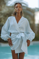 ROMARA LINEN MINI DRESS - SKY BLUE
