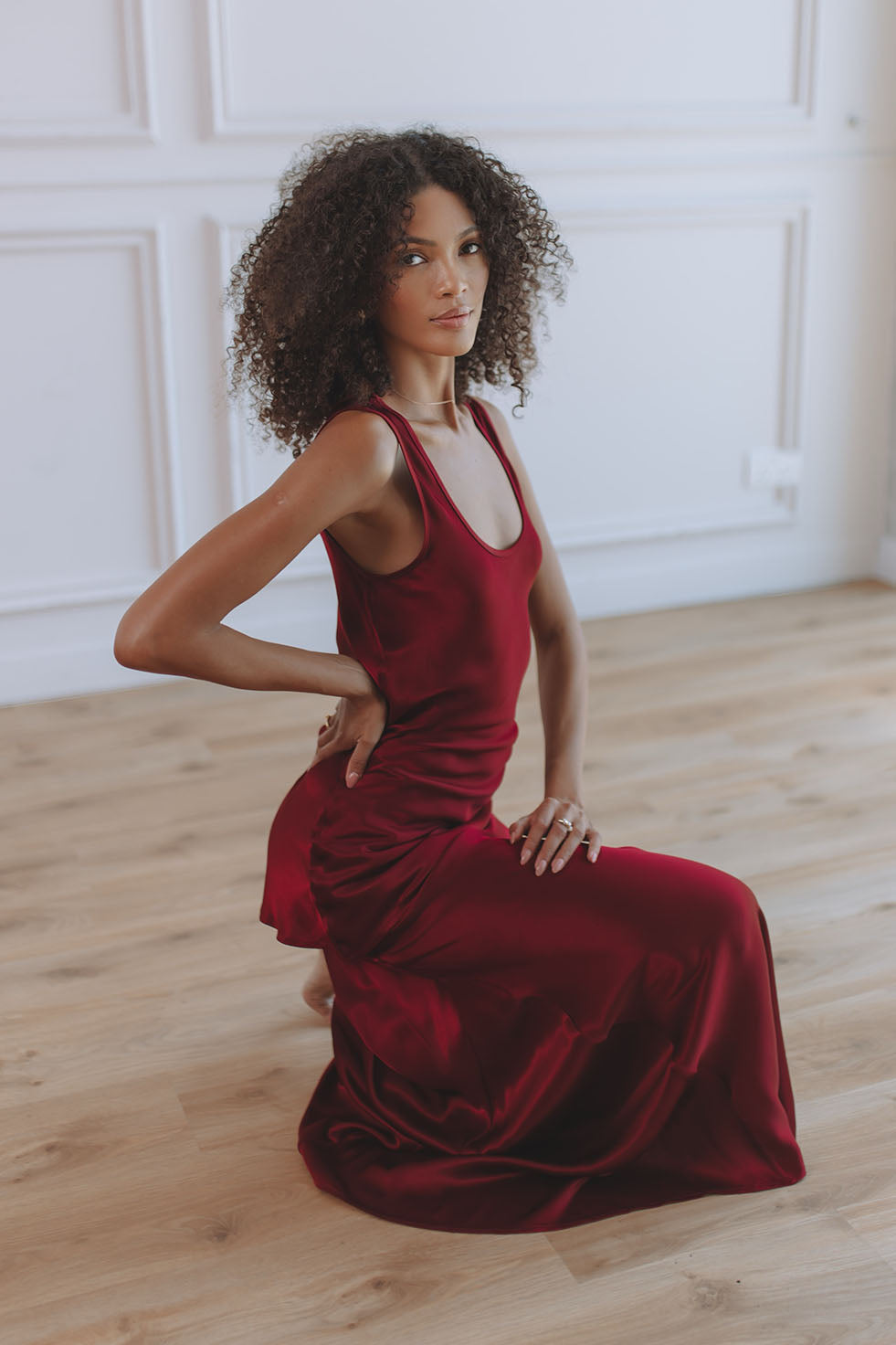 ELIZA SCOOP NECK SATIN TOP - BURGUNDY