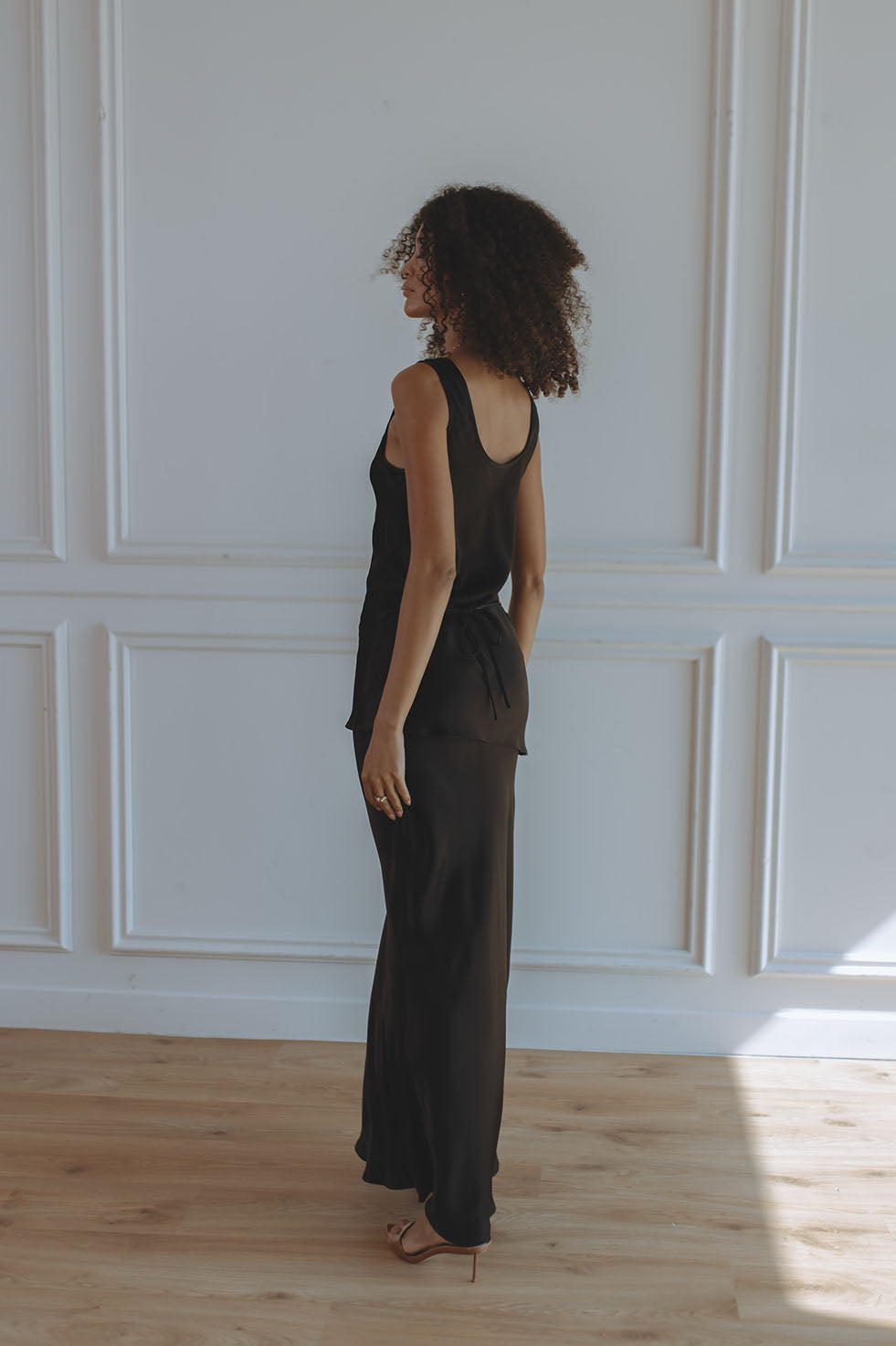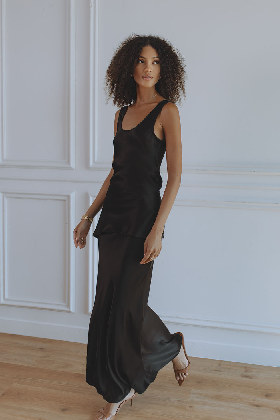 ELIZA SCOOP NECK SATIN TOP - BLACK