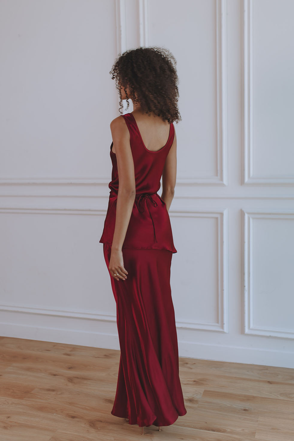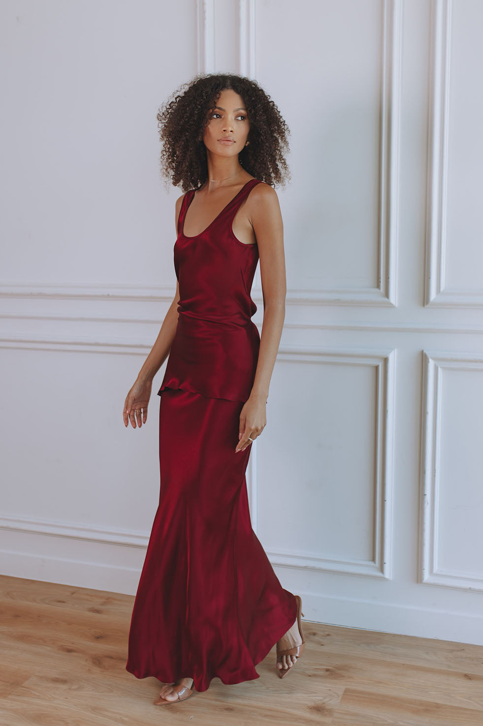 ELIZA SATIN MAXI SKIRT - BURGUNDY