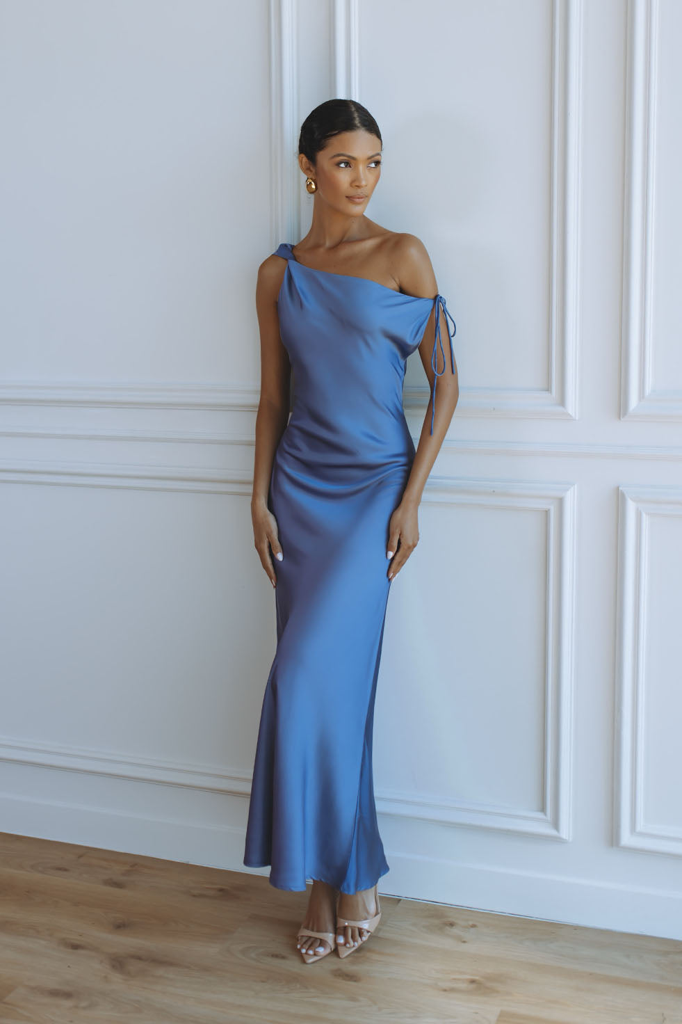 DARCY SATIN MAXI DRESS - IRIS BLUE