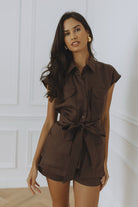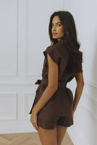 Elevated ease meets everyday sophistication. Crafted from breathable, premium linen, the Larana Set features a structured sleeveless shirt with flap chest pockets and a relaxed tailored short. The adjustable self-tie belt cinches the waist to sculpt a soft hourglass shape, balancing comfort with refined polish. Designed in our signature Bitter Chocolate hue, a deep, warm brown that complements sun-kissed skin and neutral wardrobes alike. Perfect for city days, travel edits, or laid-back dinners under warm skies.