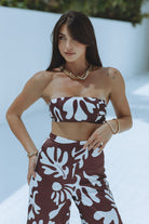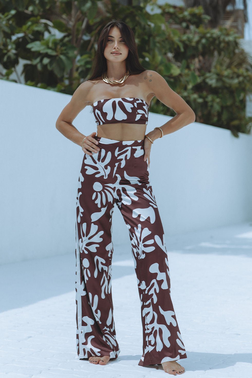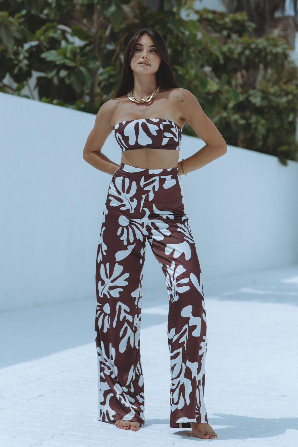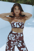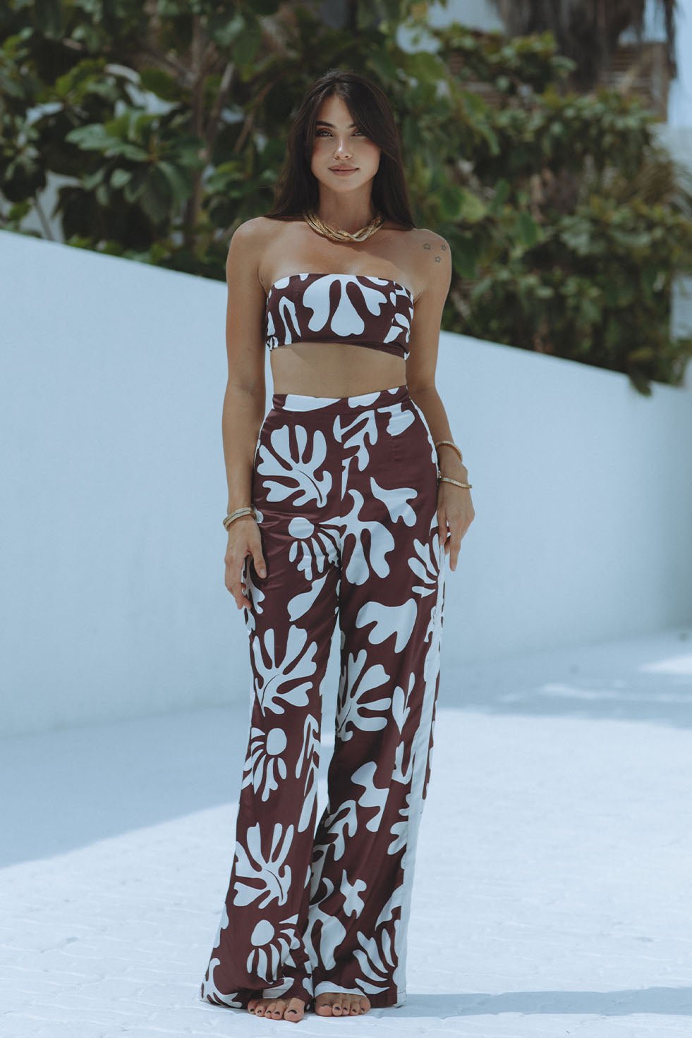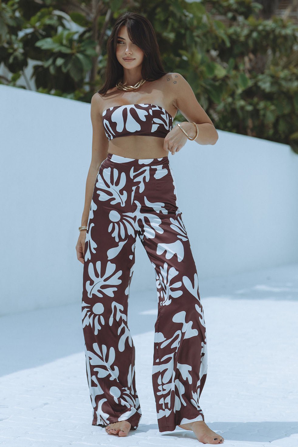 The Acadia bandeau is the definition of effortless elegance. Paired with the Avianna pants in the same print, this outfit is all you need to turn heads in every room you enter. Flaunt your collarbones or add a statement necklace to style the outfit according to the occasion.