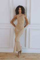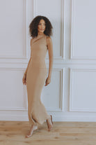 The Elowen Knit Maxi Skirt in fawn is the definition of understated sophistication. Crafted from a soft viscose-nylon blend, it features a ribbed texture that offers a flattering, body-contouring fit while maintaining stretch and comfort. Designed with a high-waisted silhouette that elongates the figure and flows into a graceful full-length hem, it pairs seamlessly with the Elowen Knit Top for an effortlessly refined co-ord look.