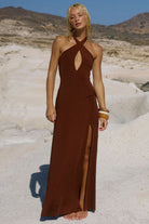 KAMILLA KEYHOLE TWIST MAXI DRESS - CHOCOLATE