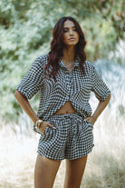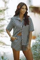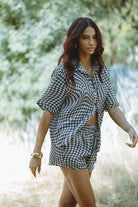 The RINA Shirt in BONN Print is a contemporary twist on classic patterns. Its striking houndstooth design in monochrome tones pairs with an effortless, relaxed fit. This shirt embodies a modern, yet timeless aesthetic. Ideal for urban explorers and fashion-forward spirits, it's a bold statement piece that doesn't compromise on comfort.