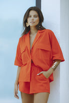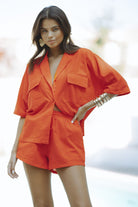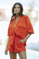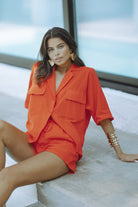 Crafted from a blend of cotton and linen, these shorts feature an elasticated waistband and drawstring for a perfect fit. Side pockets, and a bold orange hue, complete this unique look. Wear with the Ronne Shirt for a polished summer outfit.