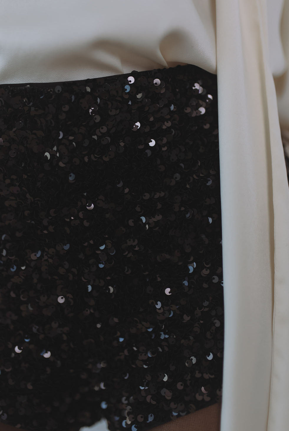 WRENLEY SEQUIN MINI SHORTS - BLACK