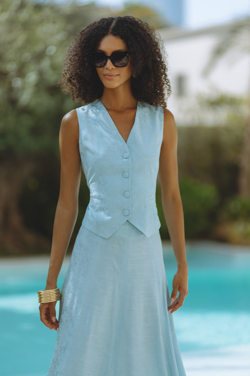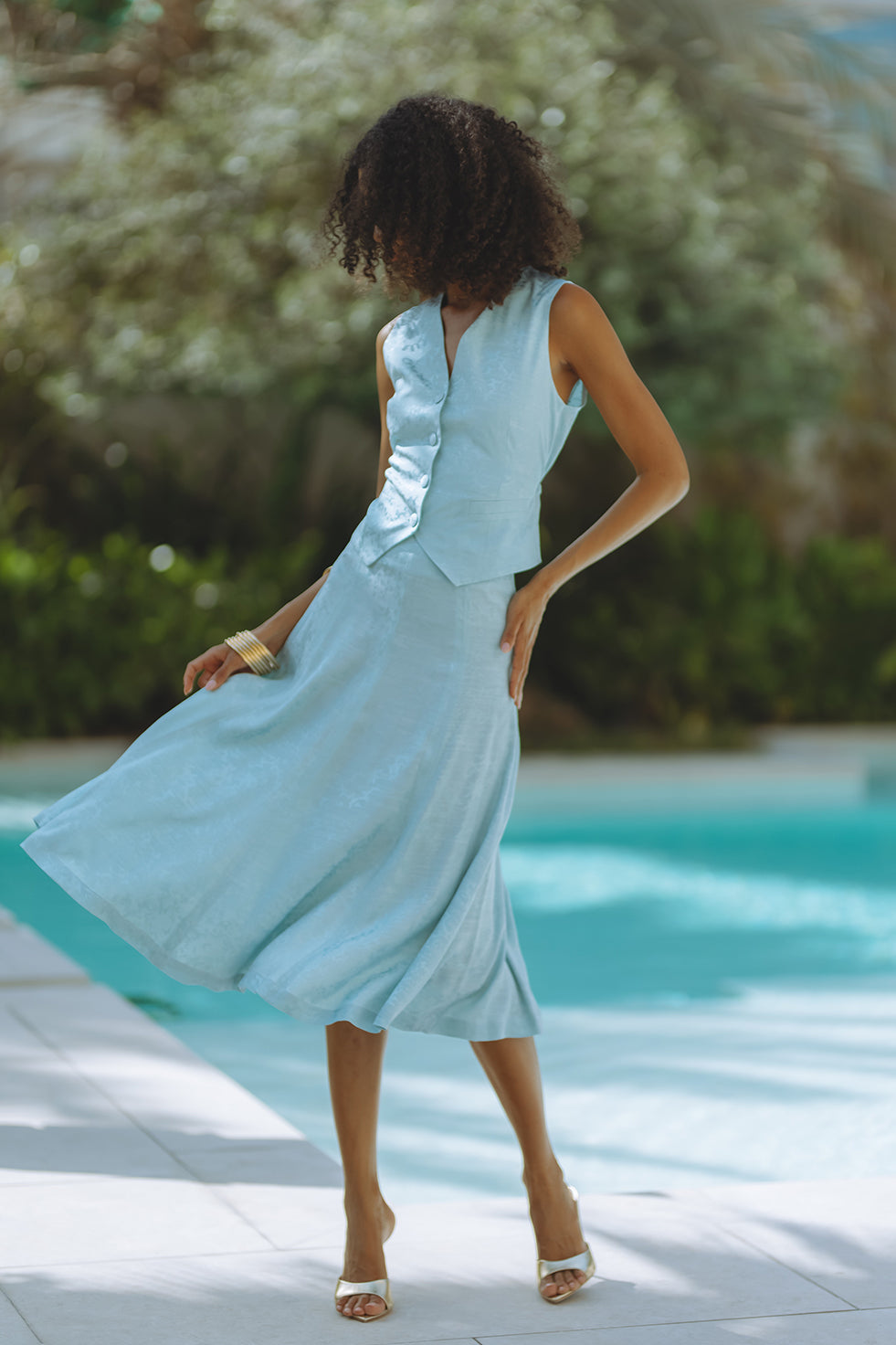 FLORENCE MIDI SKIRT - SKY BLUE/JACQUARD