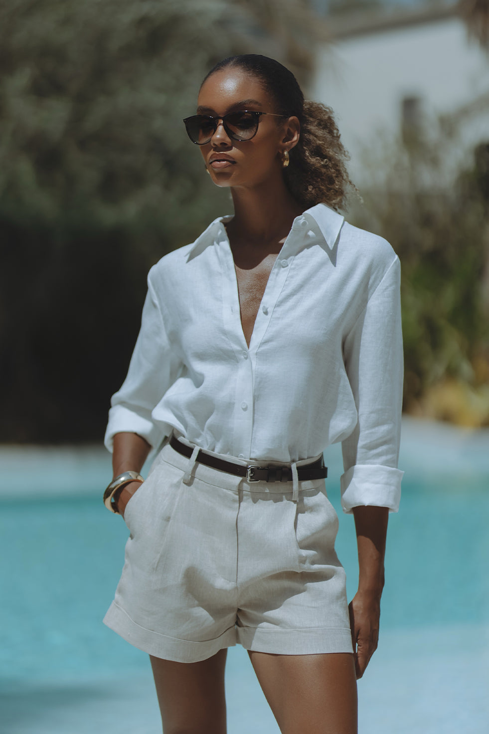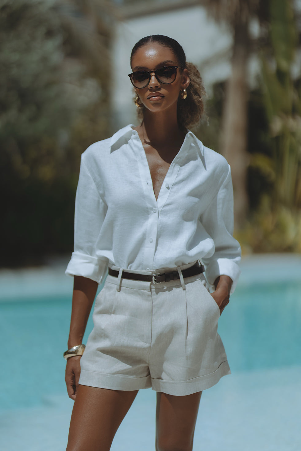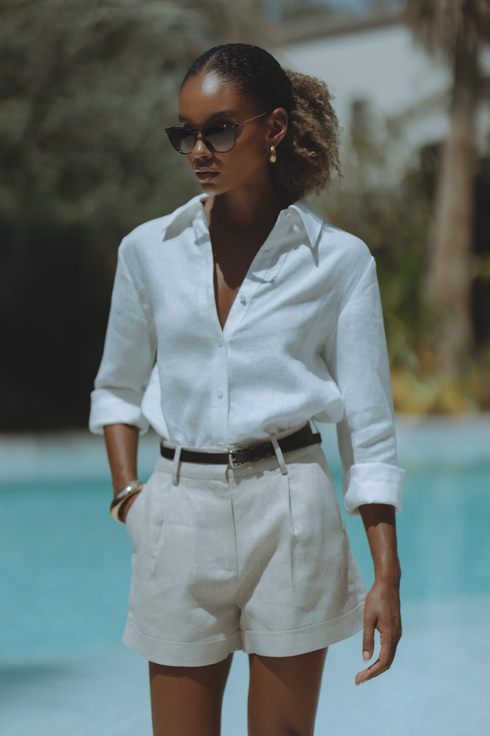 HENLEY LINEN BELTED SHORTS - NATURAL
