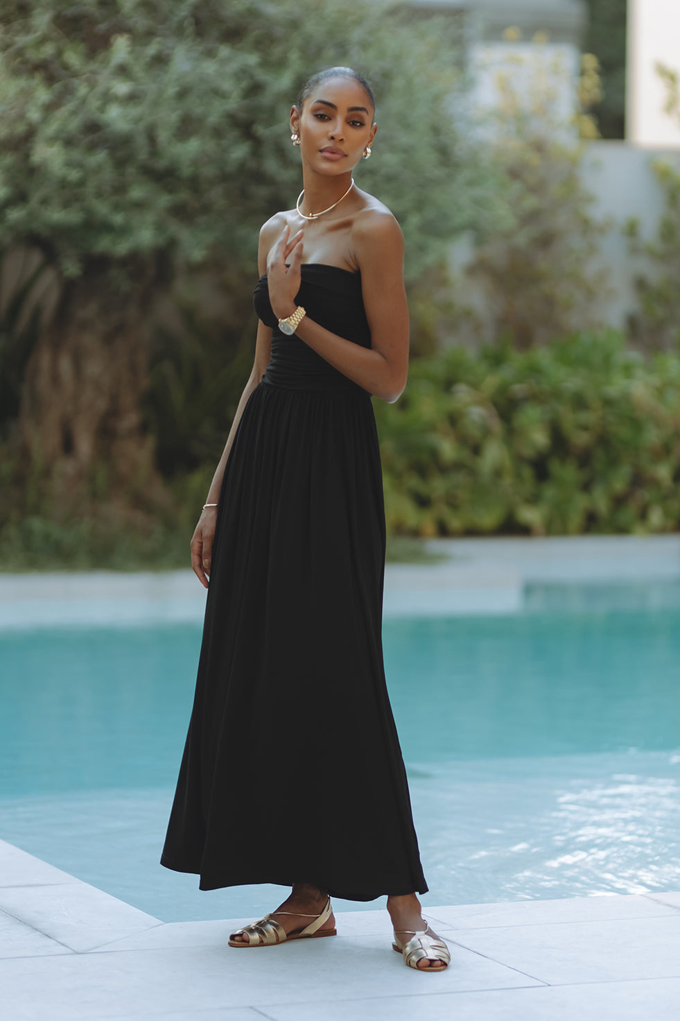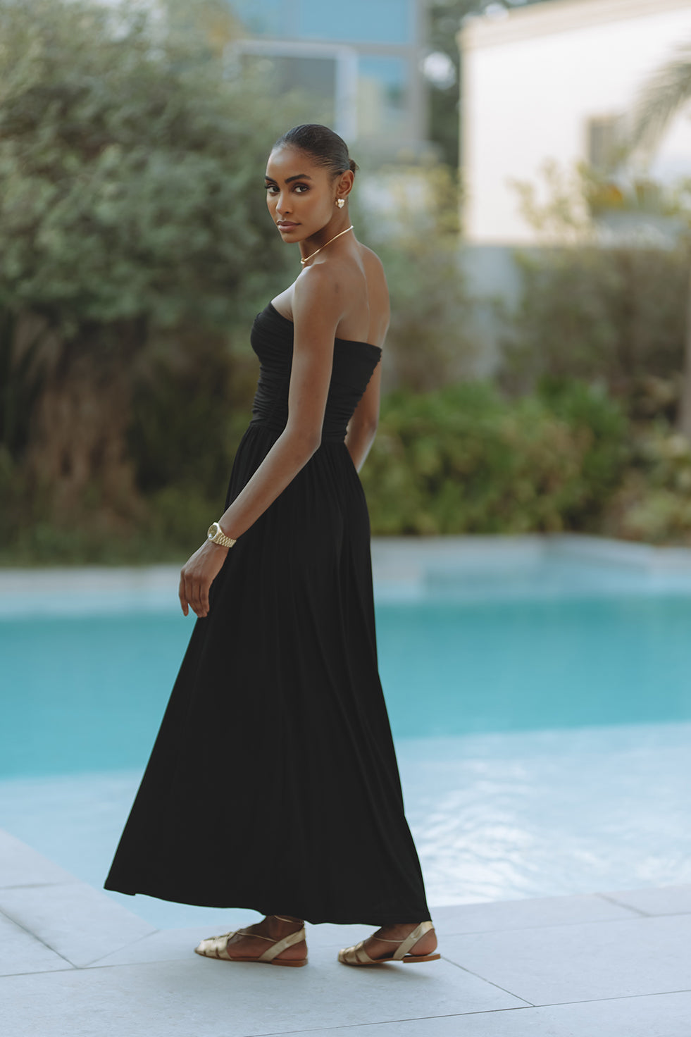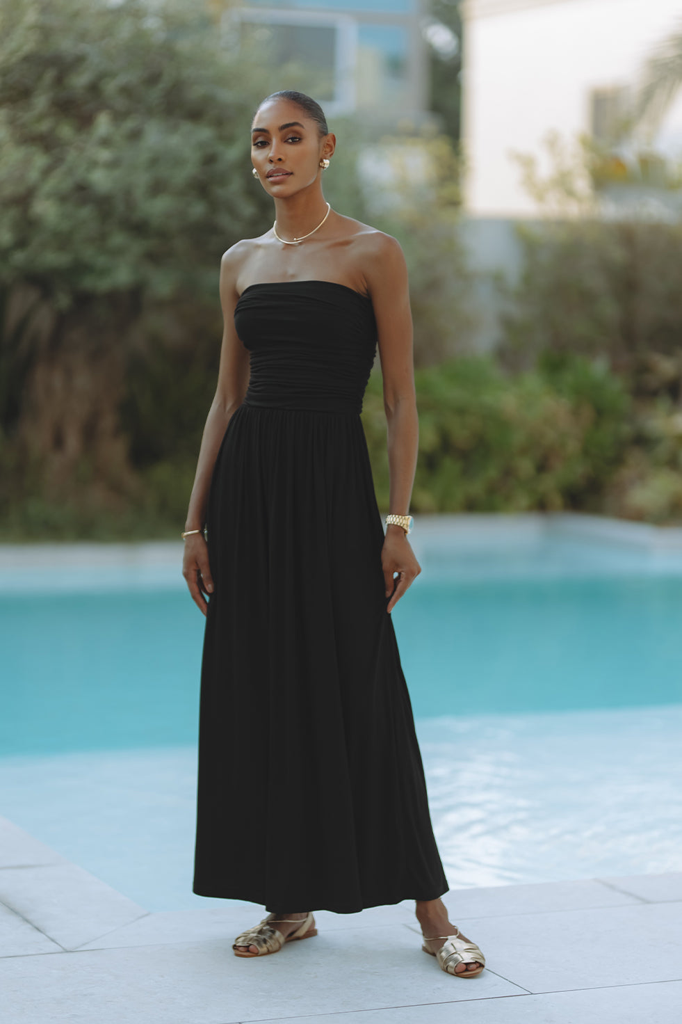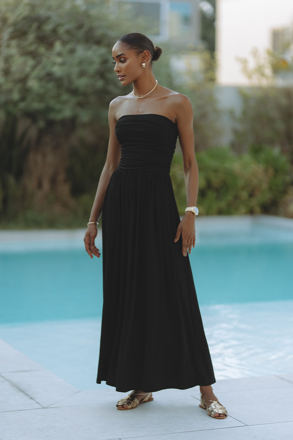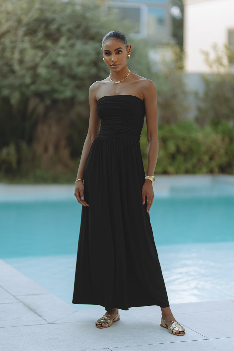 MALONE RUCHED STRAPLESS JERSEY MAXI DRESS - BLACK