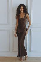 ELIZA SATIN MAXI SKIRT - CHOCOLATE