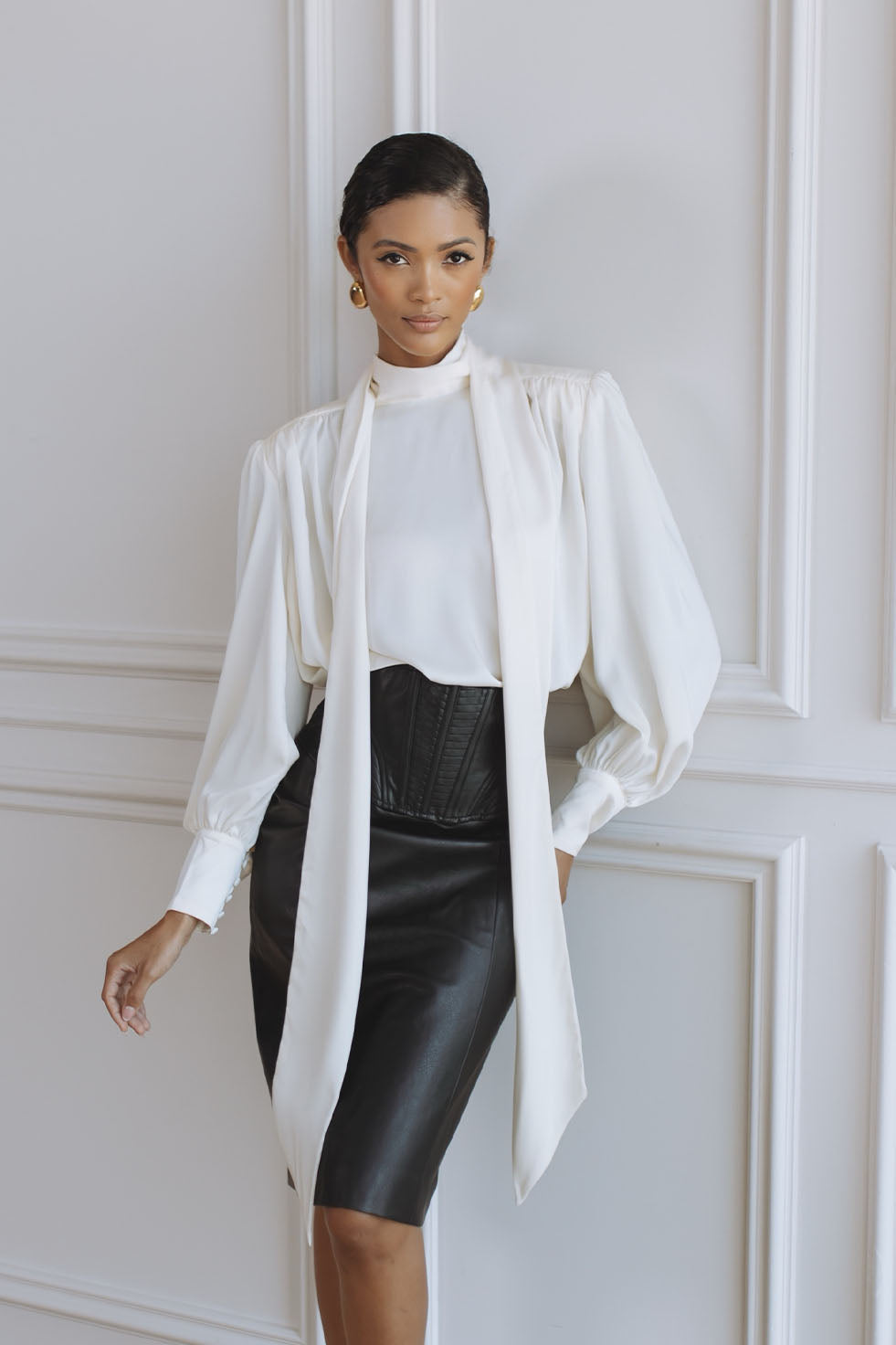HENLEY VEGAN LEATHER SKIRT - BLACK