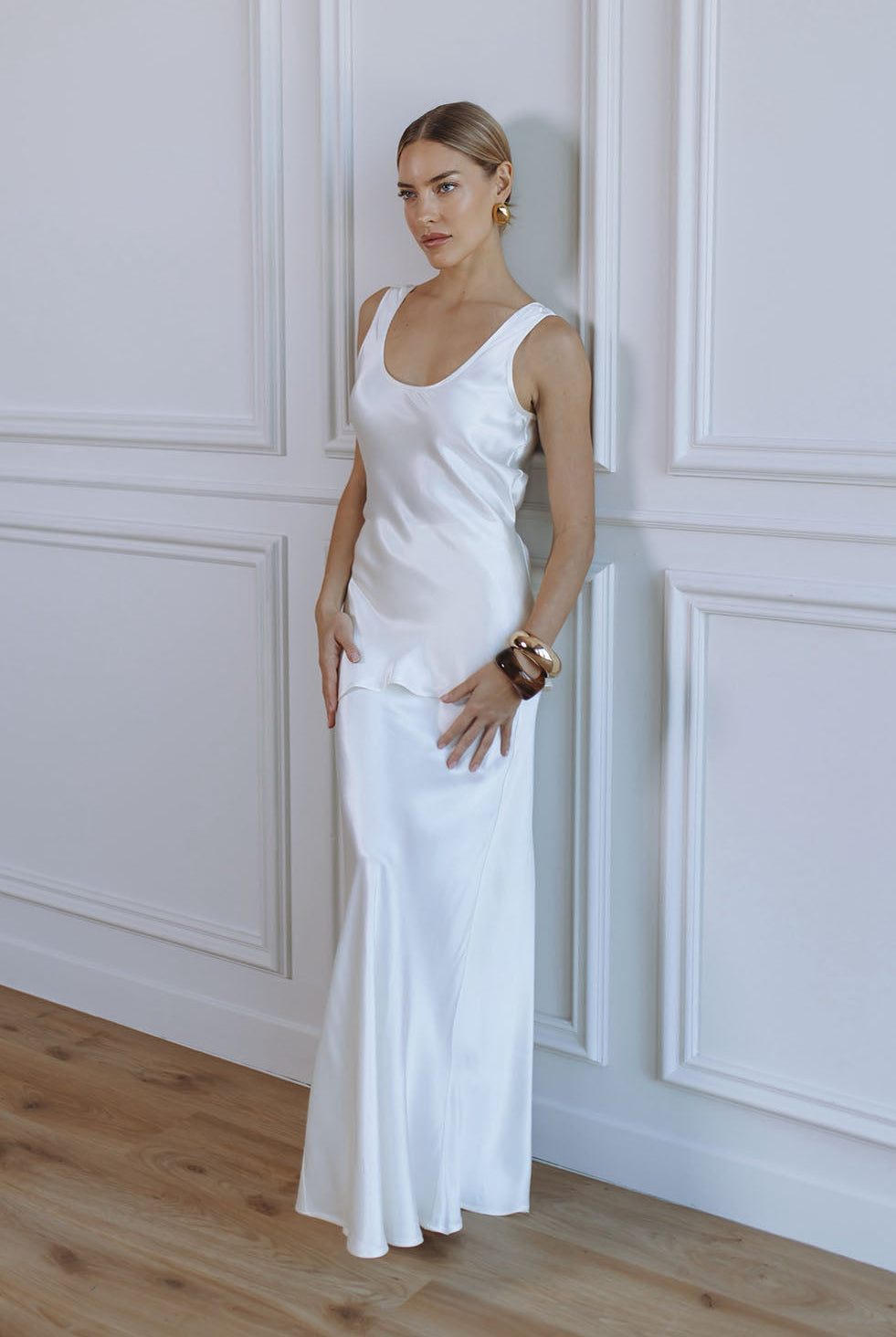 ELIZA SATIN MAXI SKIRT - PEARL WHITE