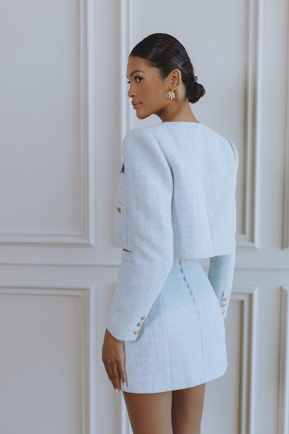 MARGAUX BOUCLE HOURGLASS MINI SKIRT - POWDER BLUE