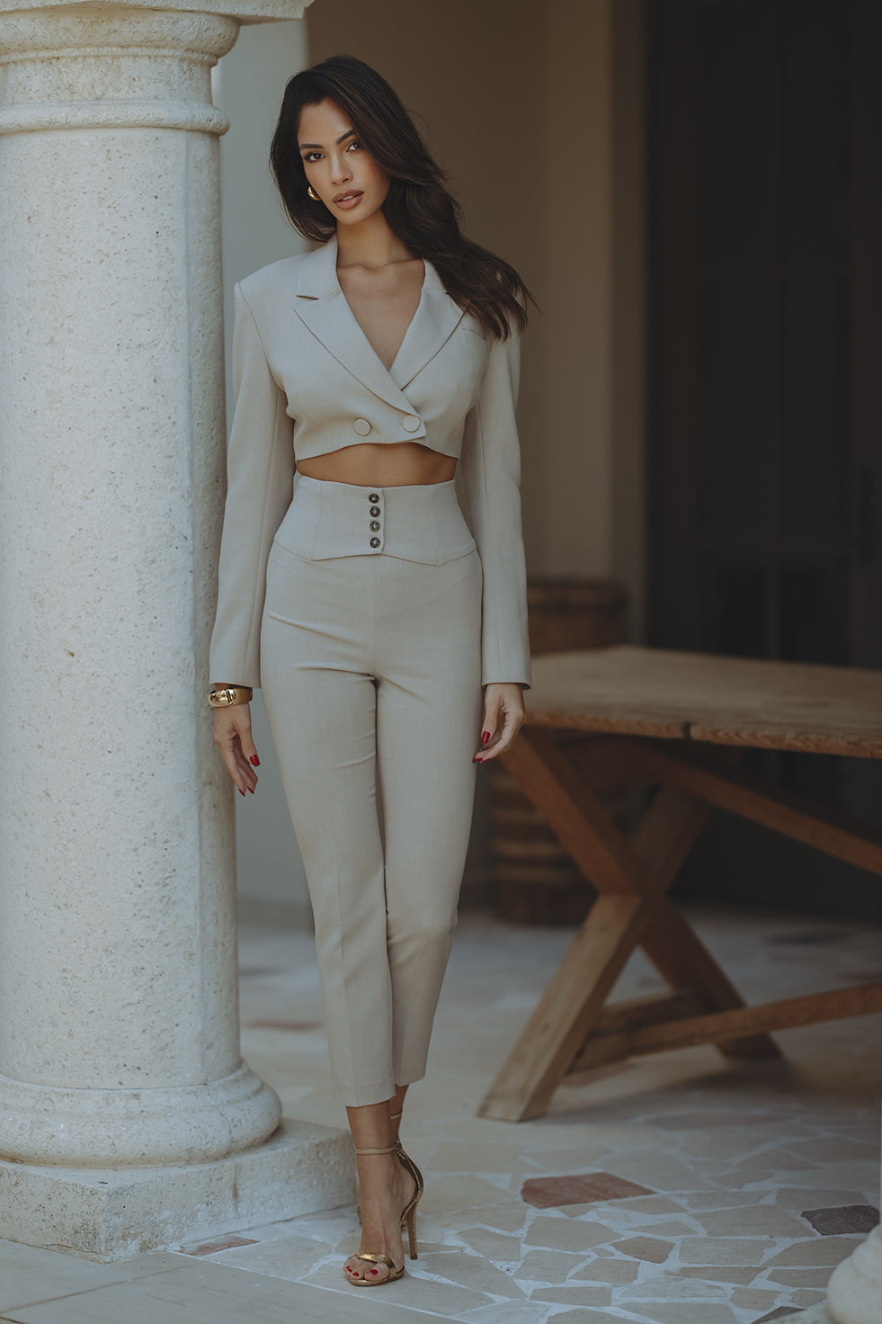 Fabrication: 65% Polyester, 30% Viscose, 5% Elastane