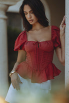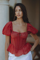 ESRA PUFF SLEEVE CORSET TOP - FIRE RED