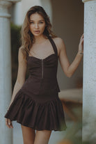 RIXTON LINEN HALTER TOP - CHOCOLATE