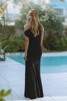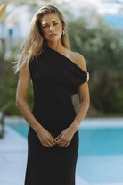 The Arden Knit Maxi Dress is a statement in understated elegance. Designed in a sleek, figure-skimming silhouette, this one-shoulder maxi is crafted from a soft, fluid knit that drapes effortlessly over the body. The asymmetric neckline is accented with a sculptural gold trim detail at the shoulder, adding a touch of modern glamour.