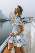 AUBRINA LINEN MINI DRESS - JARDIN BLEU