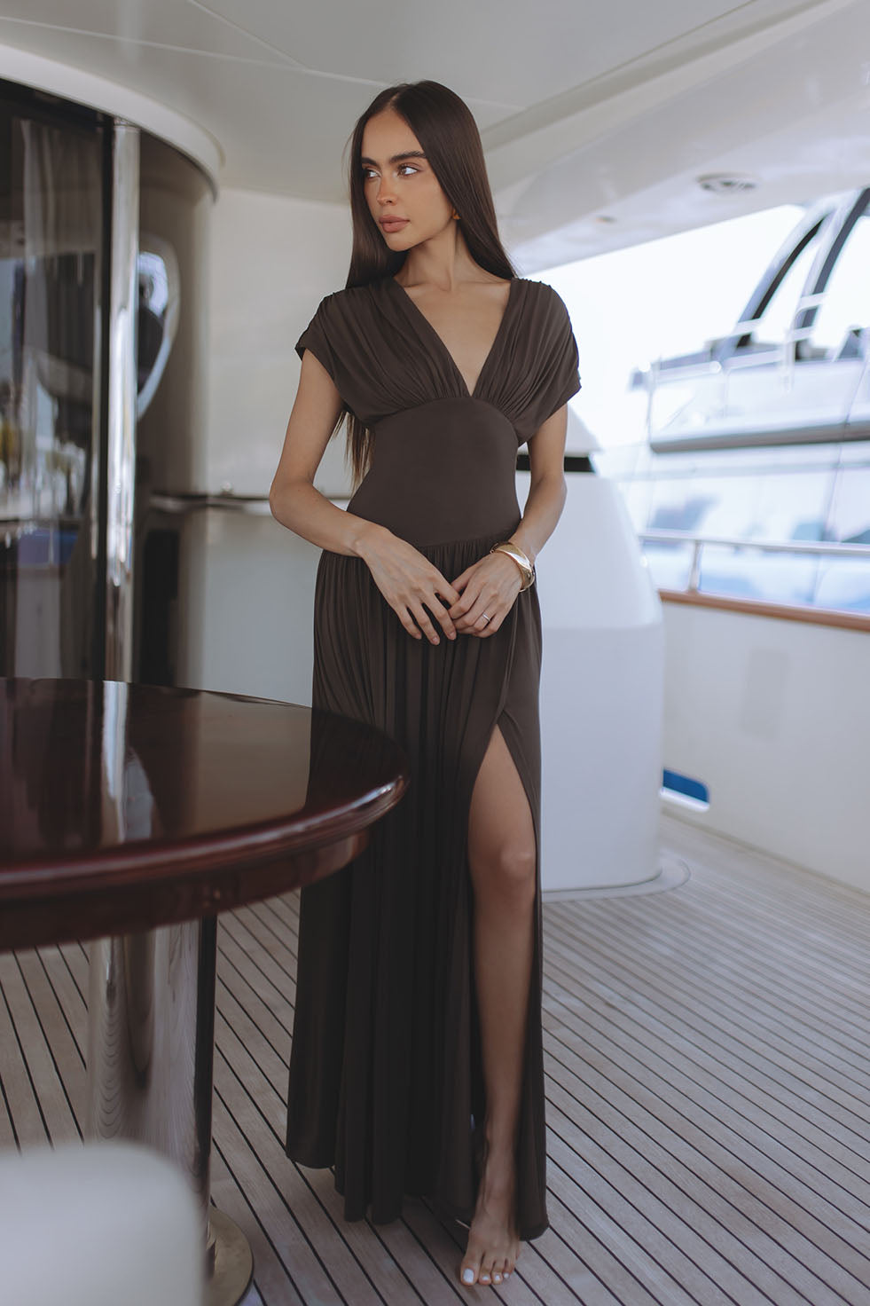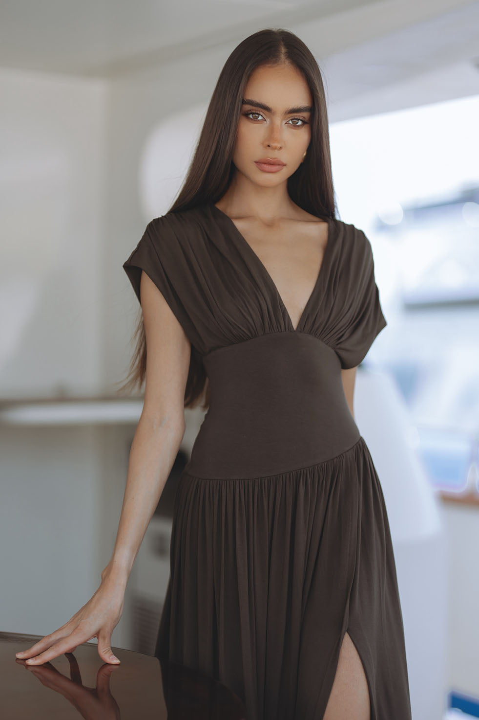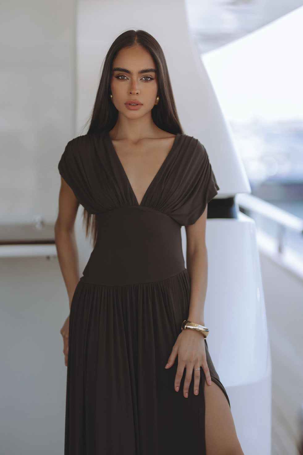 BLAIRE JERSEY MAXI DRESS - MOSS BROWN