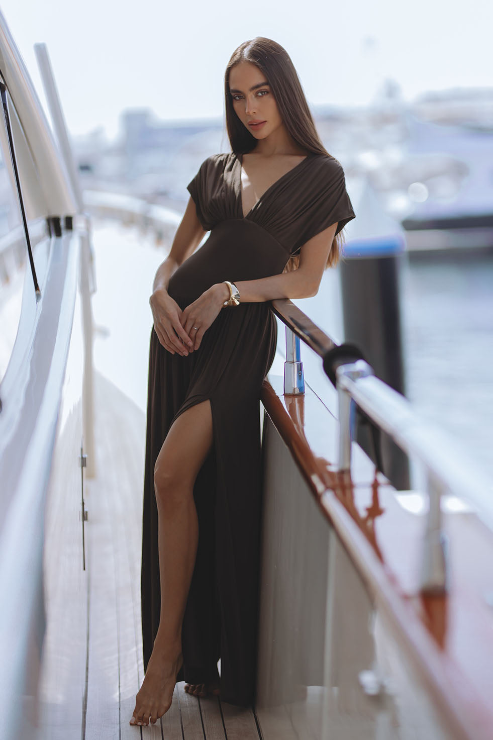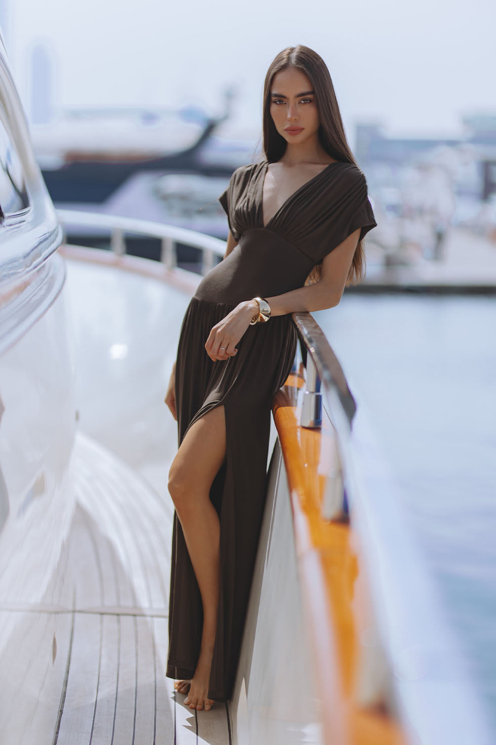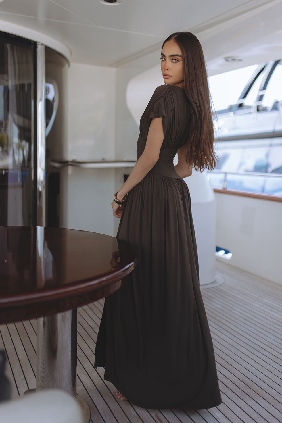 BLAIRE JERSEY MAXI DRESS - MOSS BROWN