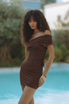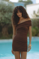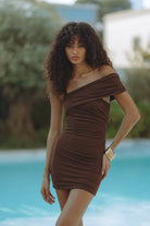 LARSEN ONE SHOULDER MINI DRESS - ESPRESSO