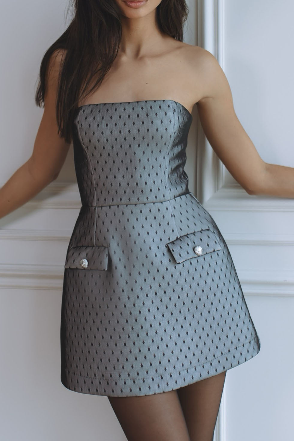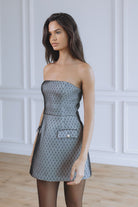 VICTORIA STRAPLESS HOURGLASS MINI DRESS - GREY