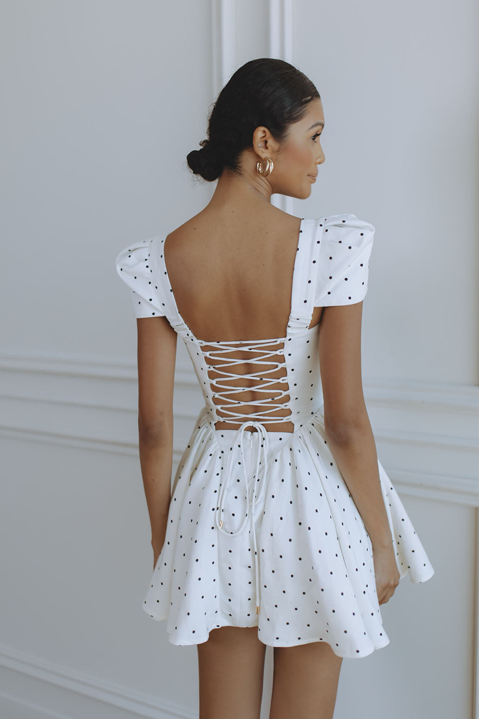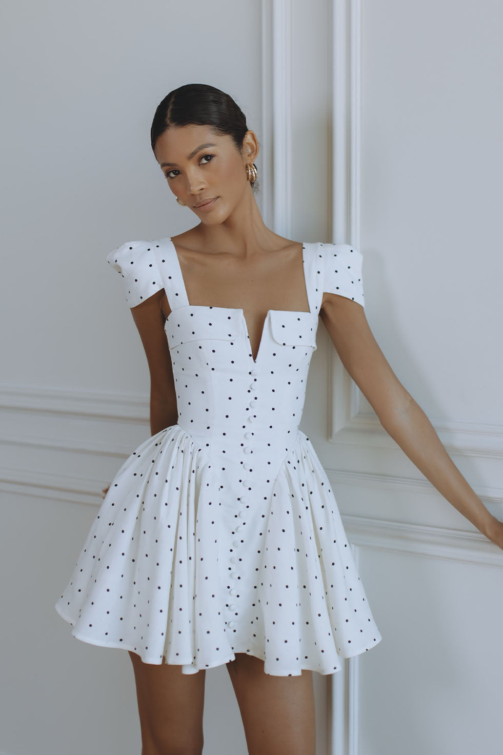ANTONELLA LINEN MINI DRESS - MINI POLKA