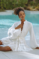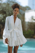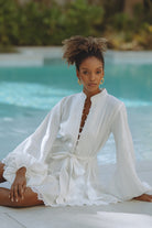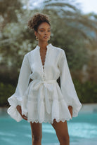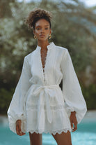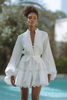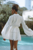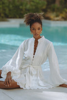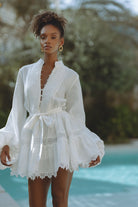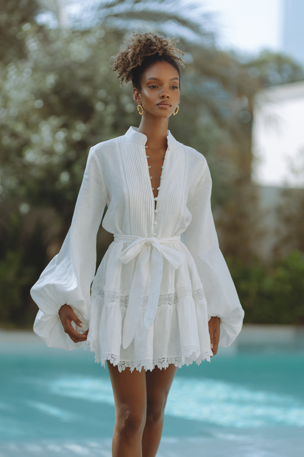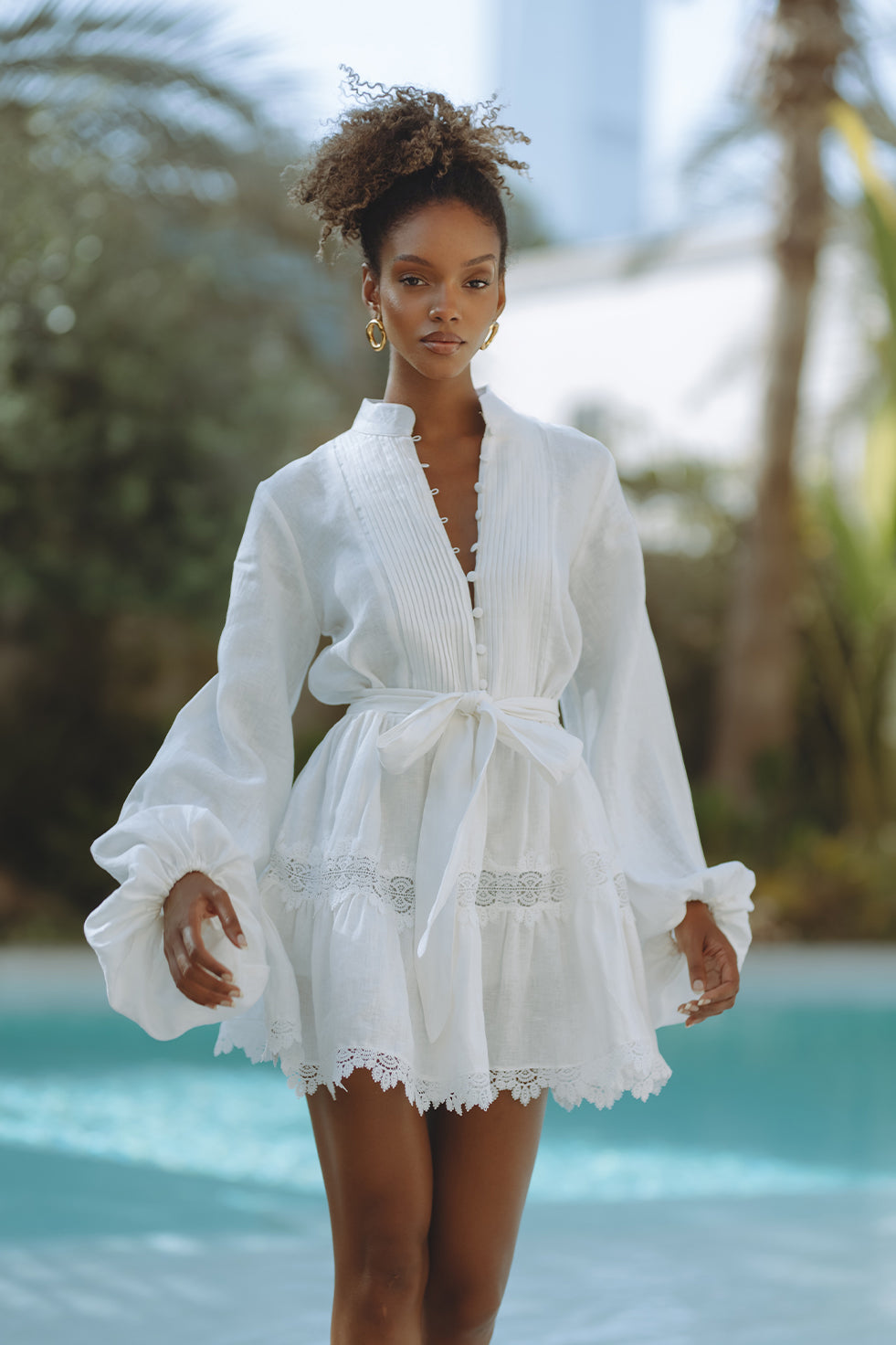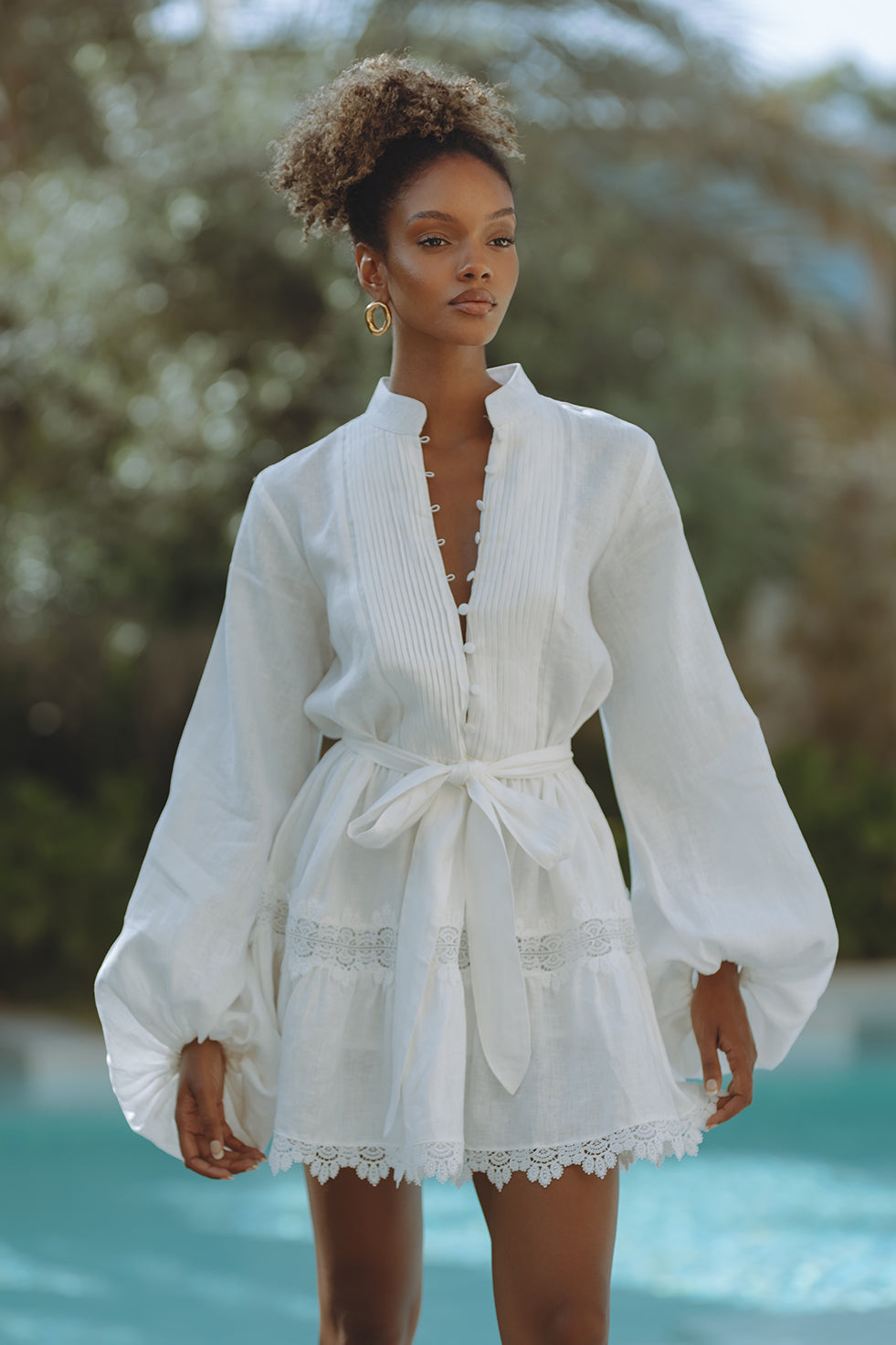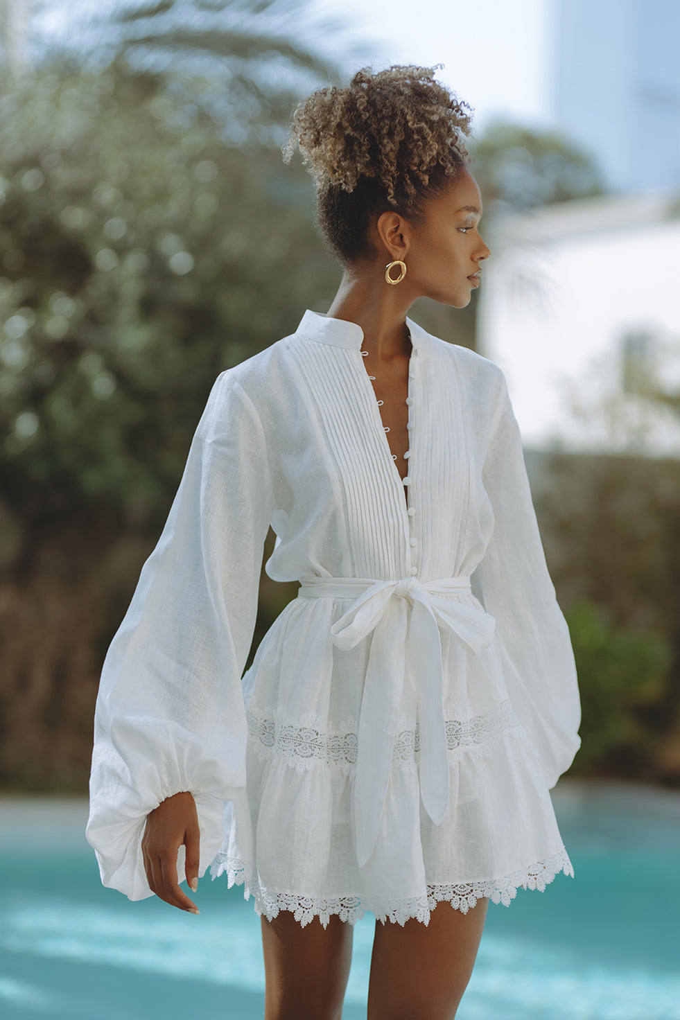 AURELIE LACE TRIM LINEN MINI DRESS - OFF WHITE