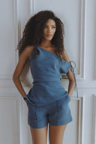 Crafted in a luxurious cupro–Tencel–linen blend, the Darcy Top is the definition of elevated ease. Designed with an asymmetric one-shoulder neckline and a delicate tie detail, it offers a sculpted yet fluid silhouette. The fabric drapes beautifully while remaining breathable, making it the perfect blend of comfort and sophistication.