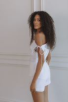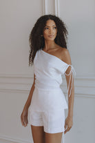 Crafted in a soft viscose-linen blend, the Darcy Top embodies effortless elegance with a relaxed yet feminine silhouette. Featuring a self-tie at the waist that can be fastened at the back for a more cinched shape, this piece flatters the form while keeping comfort in focus. Finished in a timeless off-white hue, it pairs seamlessly with the Jessica Shorts for a coordinated summer look or styled effortlessly with tailored linen separates.