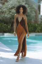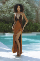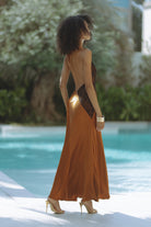 ESTRELLA HALTER MAXI DRESS - TOFFEE