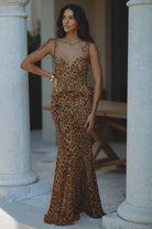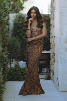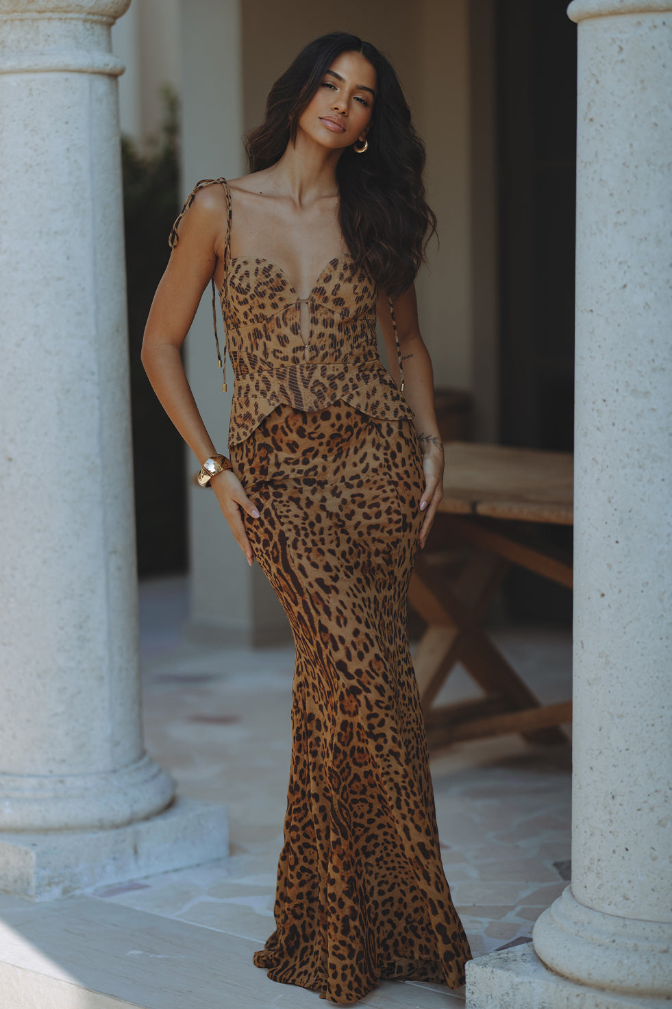 Unleash your wild side with the Ruba Bustier Top, expertly tailored in a striking leopard print. This top features slender, adjustable tie straps and a structured bodice that cinches the waist, highlighted by a dramatic lace-up back for an exquisite fit. Perfect for evenings out, this piece pairs flawlessly with our Ruba Maxi Skirt in leopard.