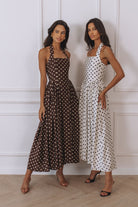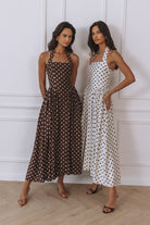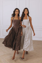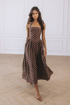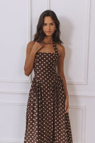 SAMMI HALTER MIDI DRESS - CHOC/LEMON POLKA
