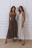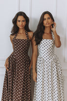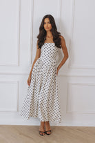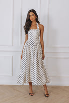 SAMMI HALTER MIDI DRESS - CREAM/BLACK POLKA