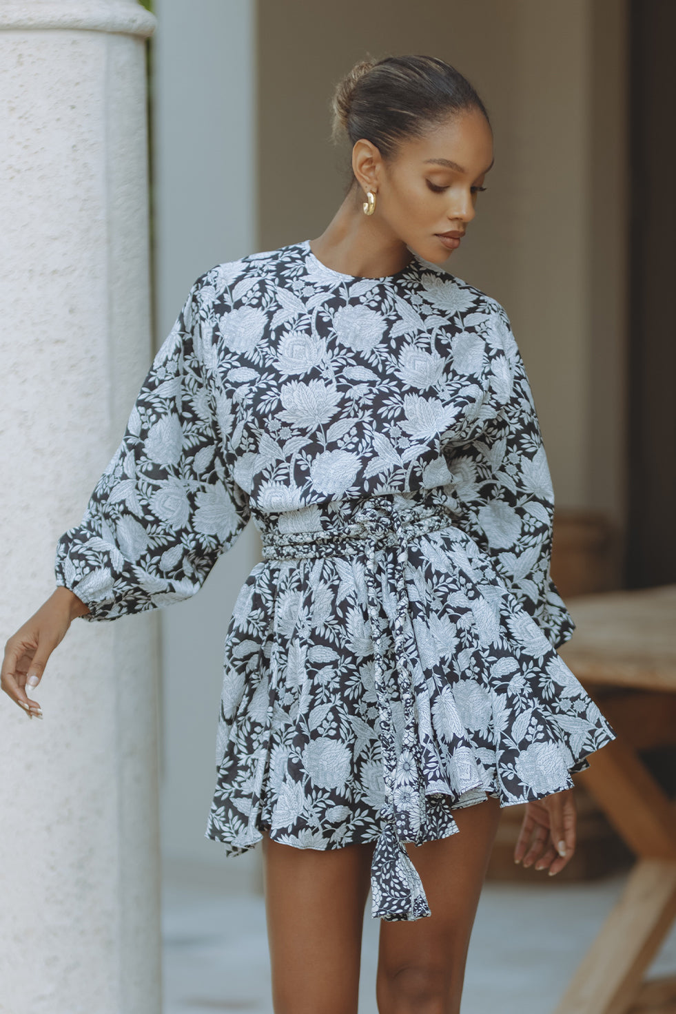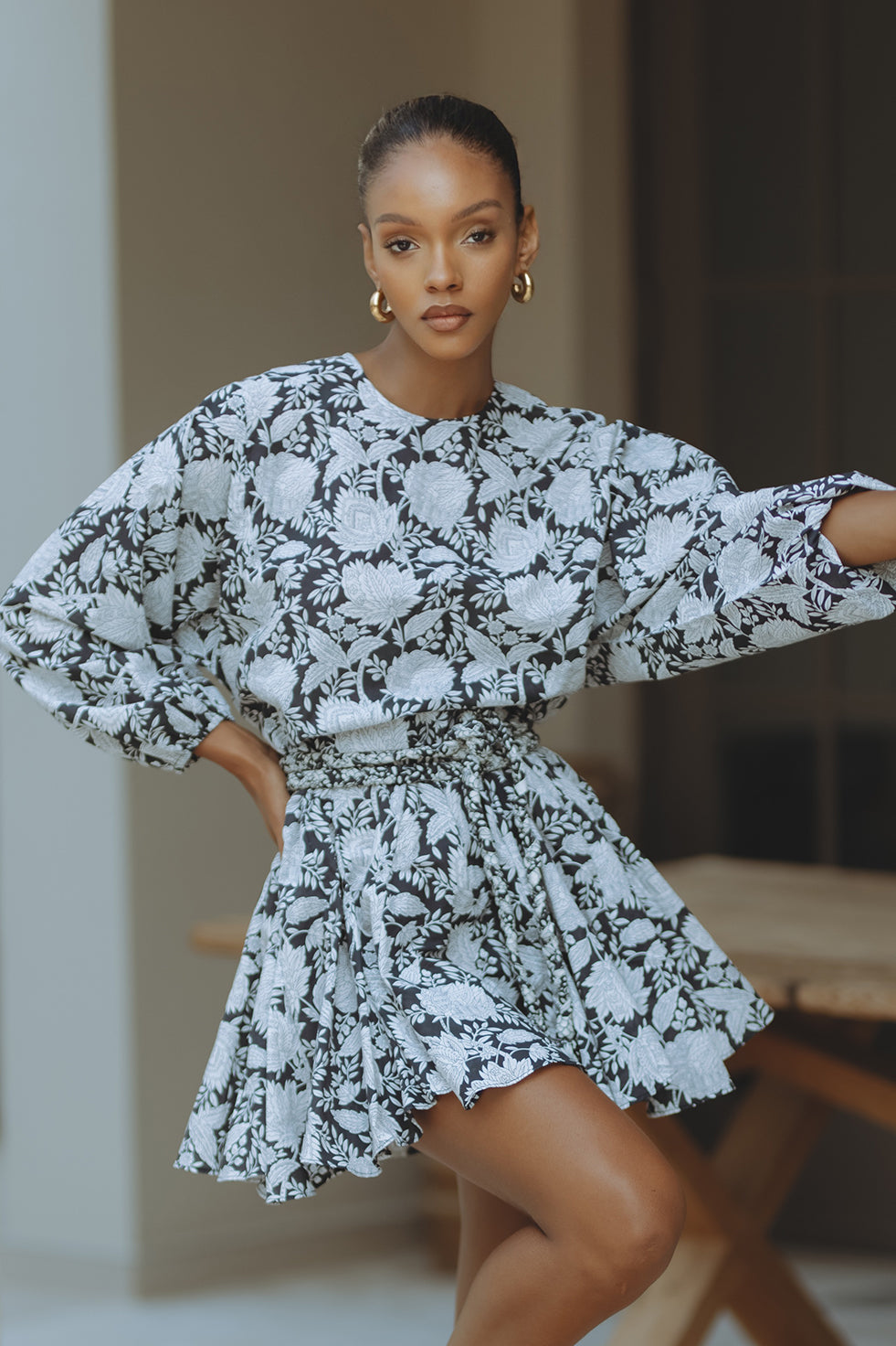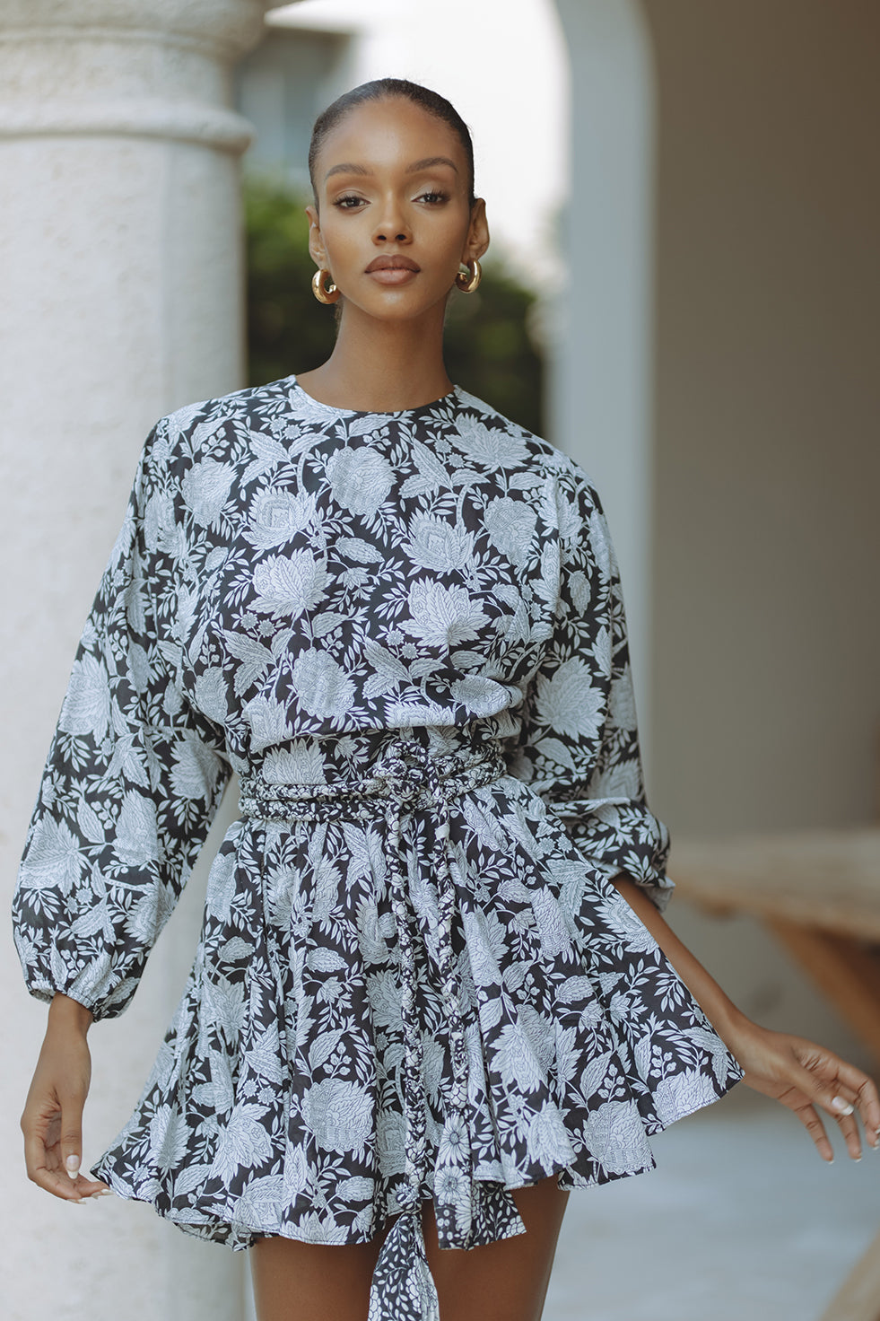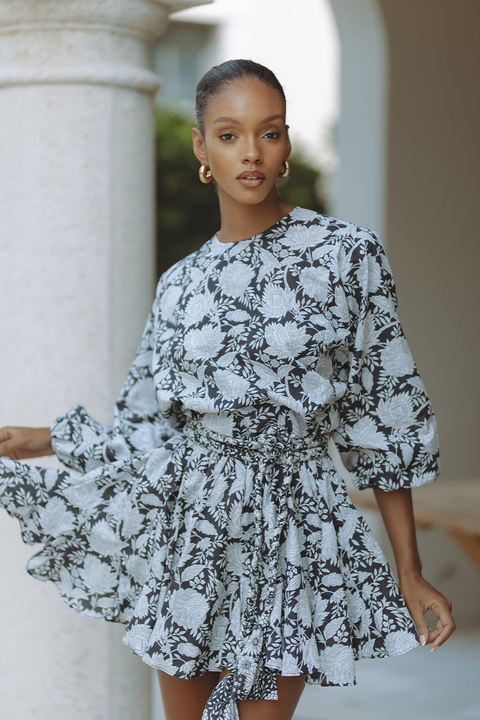 ZILPAH COTTON MINI DRESS - BOTANIC ETCH